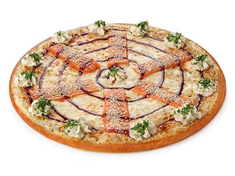 33см Лосось, сыр моцарелла, творожный сыр, соус унаги, кунжут