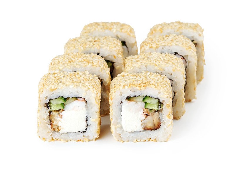 угорь, креветка, сыр, огурец, кунжут